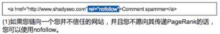 如果您把某一鏈接的“rel”屬性設置成“nofollow” , 這意味著您是 在向Google傳達這樣的信息 : 您不希望Google繼續(xù)跟蹤抓取這些 特定鏈接所指向的頁面 , 并且也不希望將自己網(wǎng)頁的聲譽傳給這些 鏈接指向的網(wǎng)頁。實現(xiàn)這樣的效果其實很簡單 , 您只需將 rel=“nofollow”放置在鏈接的錨標簽里即可。